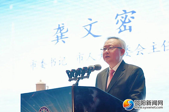 龚文密指出,这次大会是在全面建成小康社会胜利在望、全面建设社会主义现代化新征程即将开启的重要历史时刻,是在落实“三高四新”战略、开启“十四五”新征程的起点上召开的一次全球邵商大会。站在新发展阶段和新的历史起点上,市委市政府将牢记习近平总书记殷殷嘱托,主动融入国家战略全局,找准与国家、省重大战略的结合点,团结带领全市人民努力在落实“三高四新”战略中走在前列,高质量建成省域副中心、湘西南经济文化体育中心、全国区域性综合交通枢纽,奋力开启邵阳全面建设社会主义现代化的新征程。